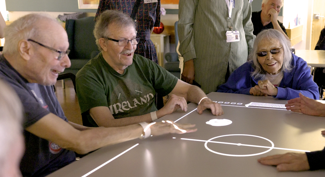 Interactive light tables that stimulate movement, cognition and social engagement for seniors with dementia.