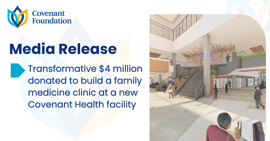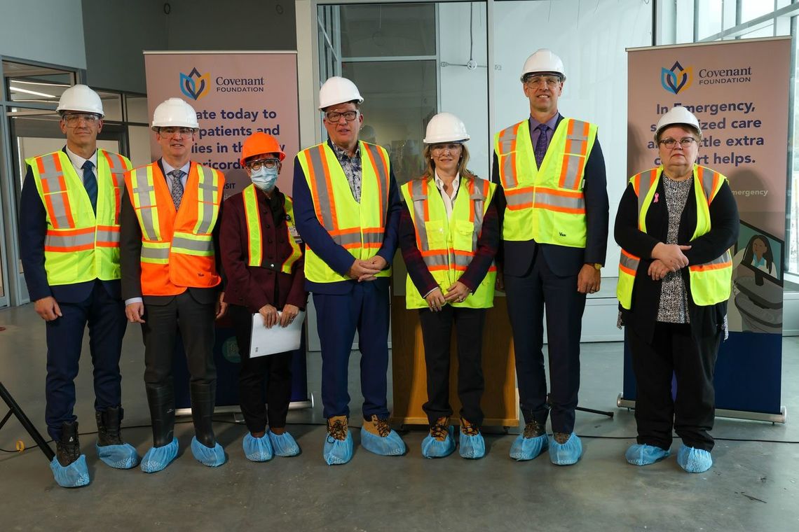Media joined us inside the new ER to hear from speakers including (from left): Rob Morrison (secretary-treasurer, Edmonton Civic Employees Charitable Assistance Fund), Minister Jason Copping (Alberta Health), Jo Ann Molloy (senior operating officer, Misericordia Community Hospital), Patrick Dumelie (CEO, Covenant Health), Lisa Munro (president & CEO, Covenant Foundation), Deputy Premier and Minister Nathan Neudorf (Alberta Infrastructure), Treena Hrytsak (patient ambassador)