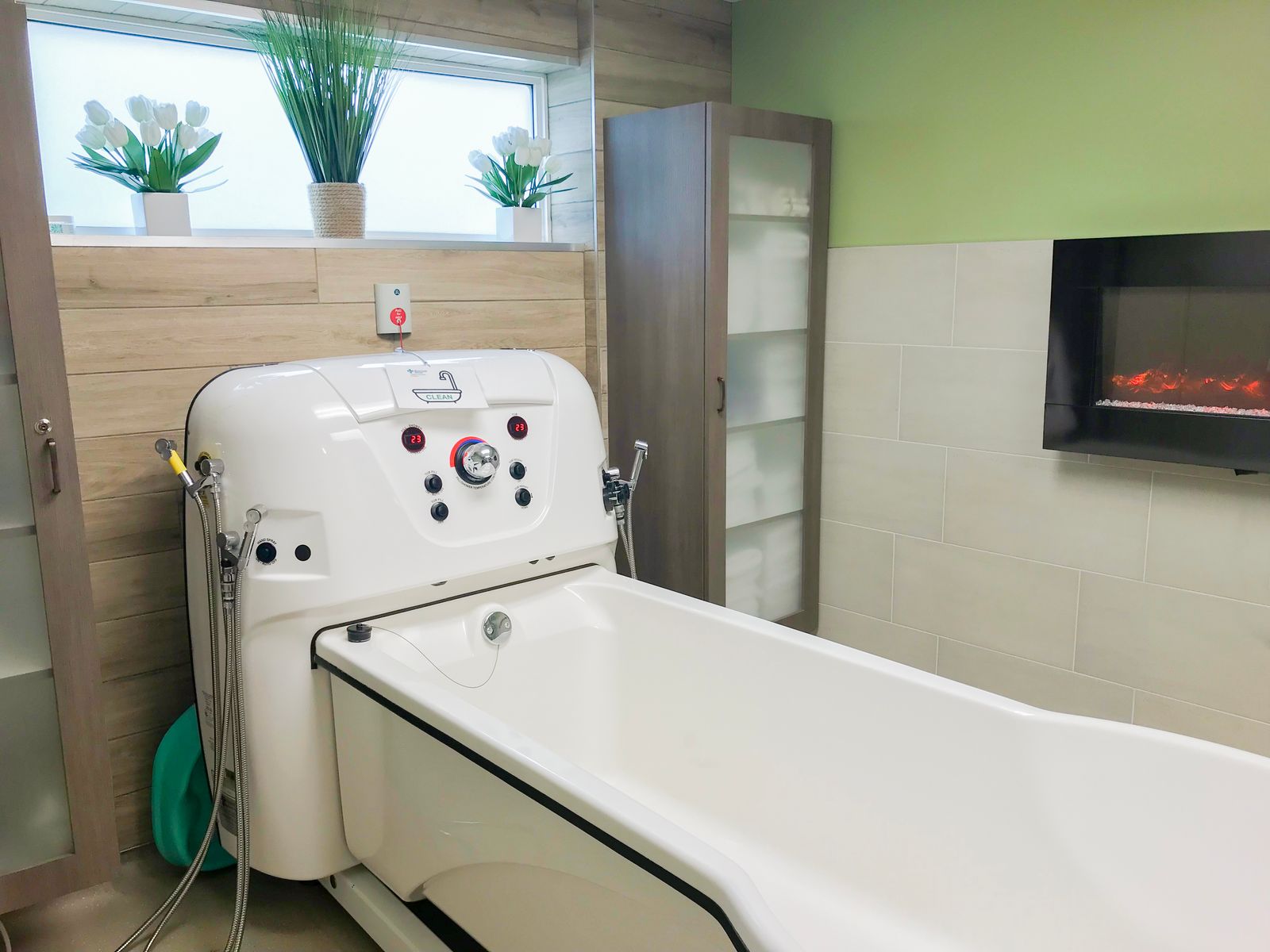 Hospice and long-term care residents at Foyer Lacombe in St. Albert are enjoying their renovated tub room that’s often referred to as the spa. “I go in there twice a week, and I really like it,” says Dorothy, a 93-year-old resident, who adds that she likes the warmth and feel of the space.