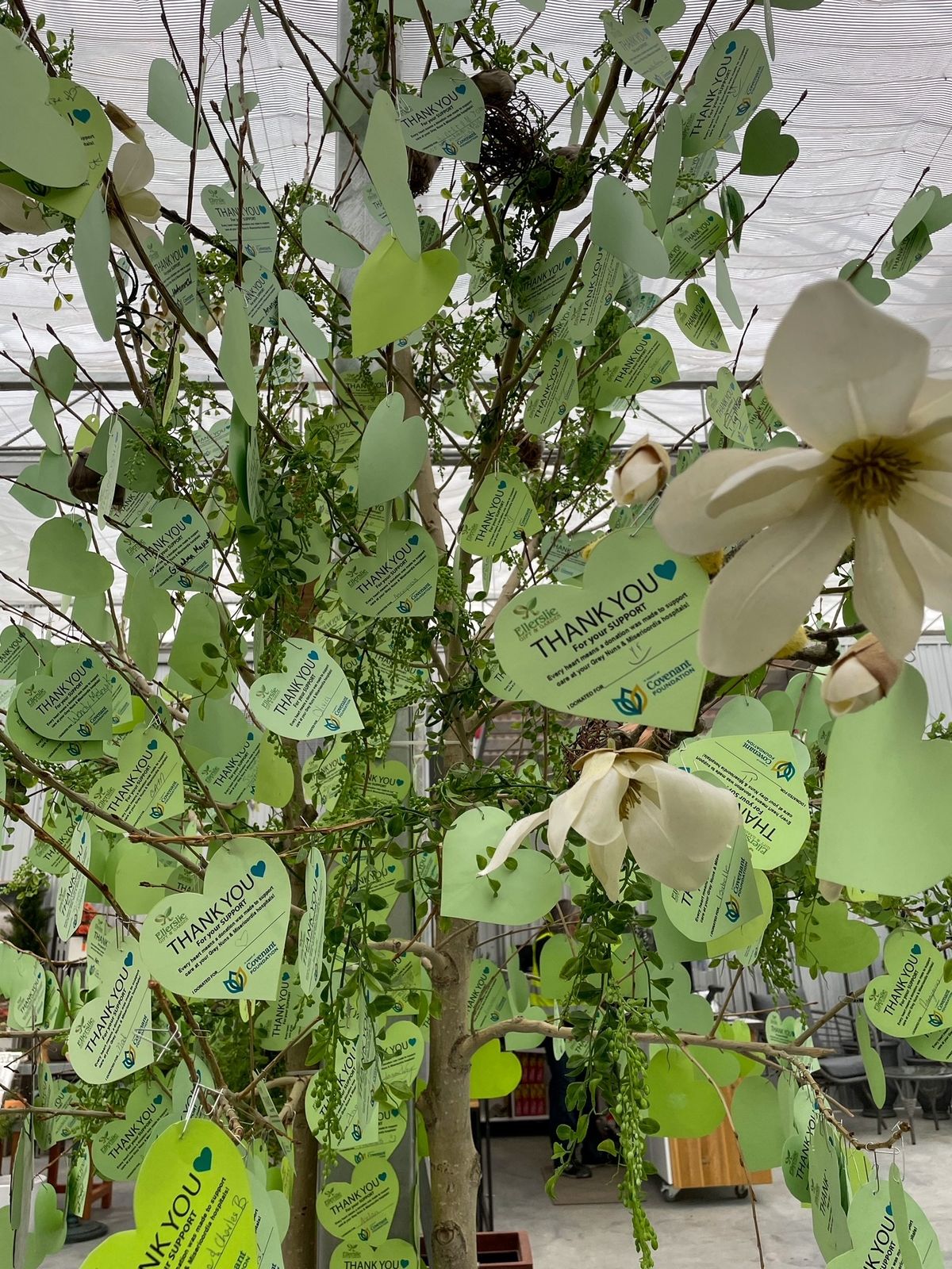 “It was amazing to see the tree getting filled up with green hearts,” says Karen Schiltz, one of the Classic Gardens staff members who helped coordinate the campaign. “When you're reading the messages on the tree, you realize it’s not just people’s own names, but messages for children or neighbours. It got everyone thinking about all the experiences that they and the people they know have had, showing that everybody is touched by these hospitals.”