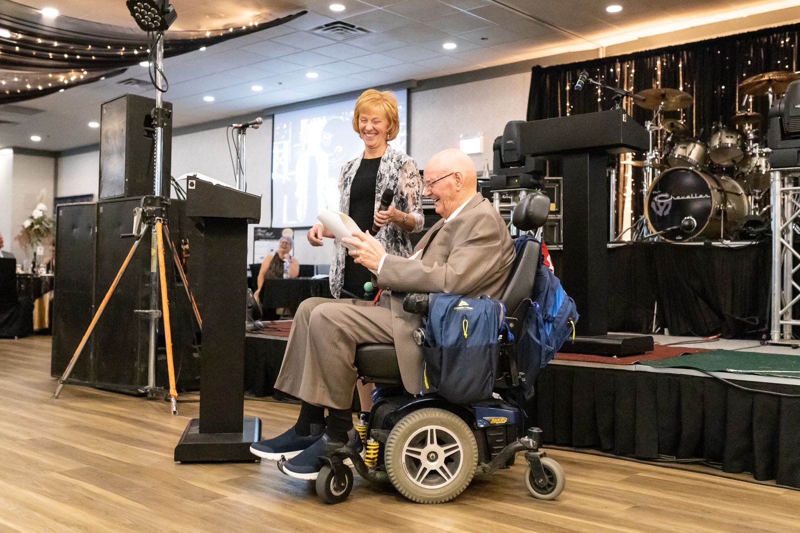 During the program, guests were also treated to a special speech from St. Therese Villa resident Ole Hammerstedt and recreation supervisor Christey-Ann Veldman. Their heartfelt and humorous speech about the Covenant Foundation-funded bus that Ole loves so much brought laughter and tears to the audience who filled the room with applause.