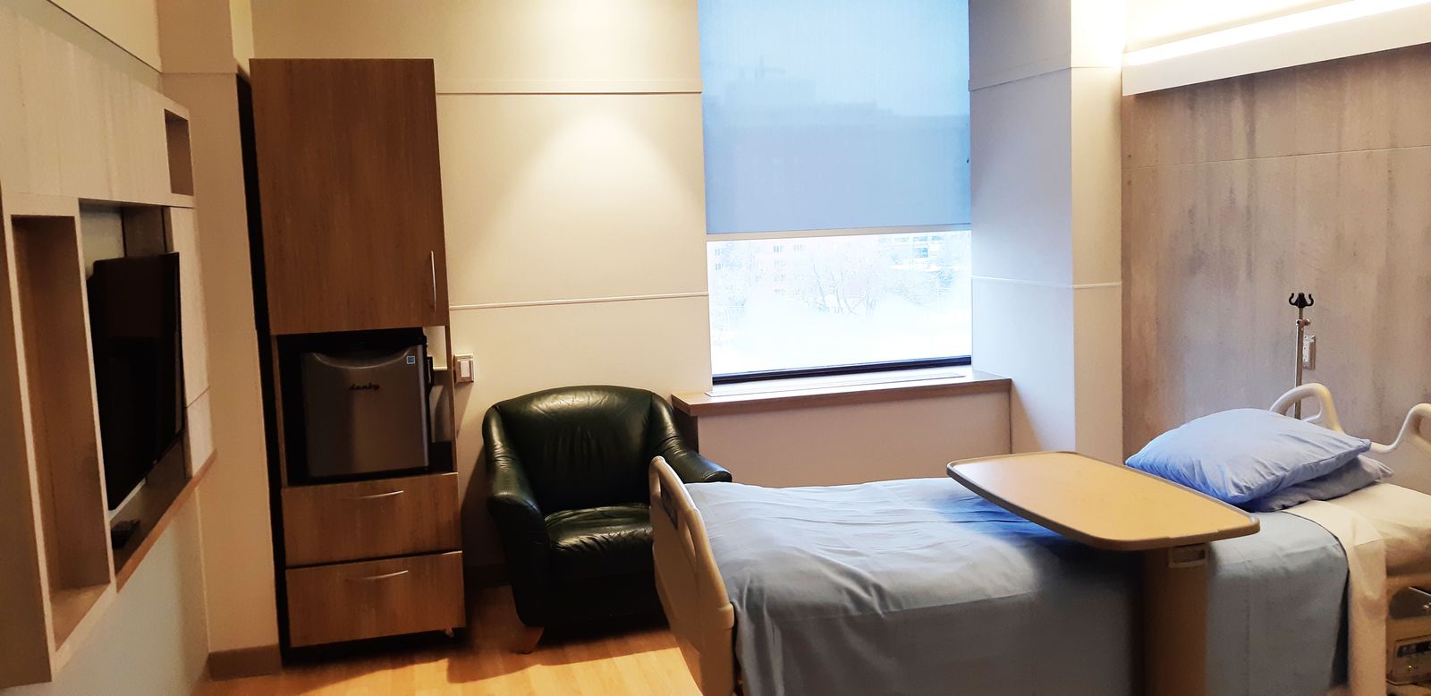 All 26 rooms in the palliative care unit are being renovated with the addition of modern furnishings, big-screen television sets and refrigerators. Two common areas are also receiving improvements with a new fireplace, shelving and furniture. The kitchen is also being enhanced with a family nourishment centre so visitors can have easier access to refreshments and meals at the bedside of their loved ones.