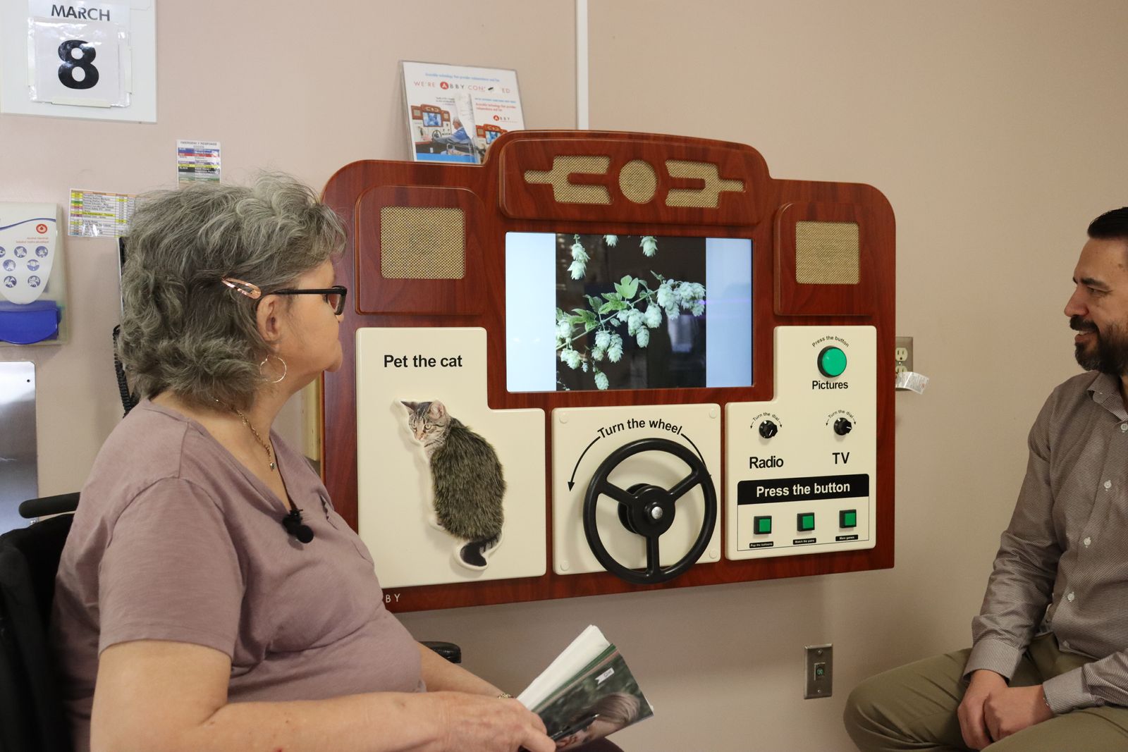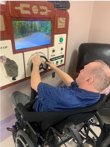 Luanne Tiedemann, the daughter of resident Jim Walker, also spoke about how wonderful the ABBY unit is as she has witnessed her dad using the driving game on the unit and immediately becoming calm and relaxed. As a former truck driver, Jim had a stroke and now lives with dementia. Luanne was worried about finding a suitable home for her dad, who is unable to communicate, and she is relieved that he is settling in and being well taken care of - thanks in part to the generosity of donor support for enhancements such as the ABBY. “He’s in a safe place, says Luanne, and the staff are providing great care."