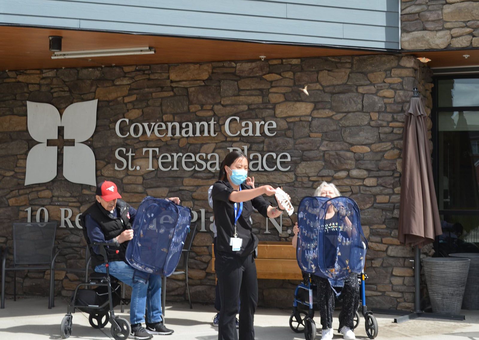 Mary Jo Beveridge, 78, a resident of St. Teresa Place in Calgary, was overcome with powerful emotions as she watched dozens of majestic butterflies be released from their enclosures.