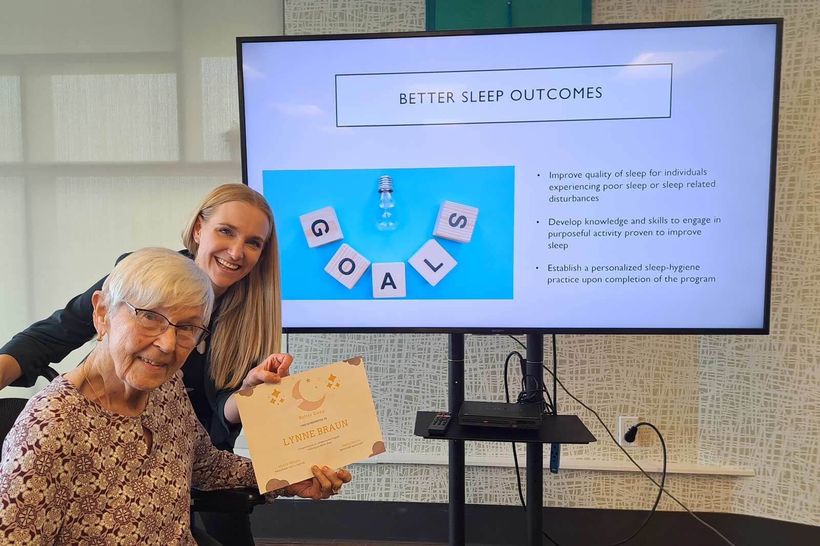 Given its initial success, Mandy has now launched the Better Sleep program with a second group of residents at St. Teresa Place. She and her team also continue to follow up with the original group to track any changes in their sleep and to see what activities they are still practicing.