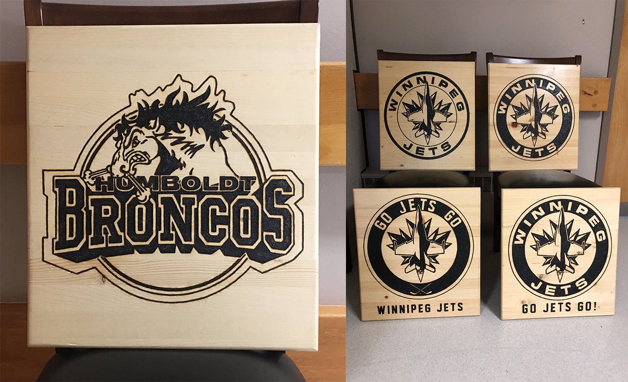 The hardcore hockey fan, who has no control of his fingers and limited use of his hands, uses a magnifying glass and the sun to carefully burn detailed images into wood, with some pieces taking more than 60 hours. His favourite subject is hockey and, in particular, Edmonton Oilers captain Connor McDavid.