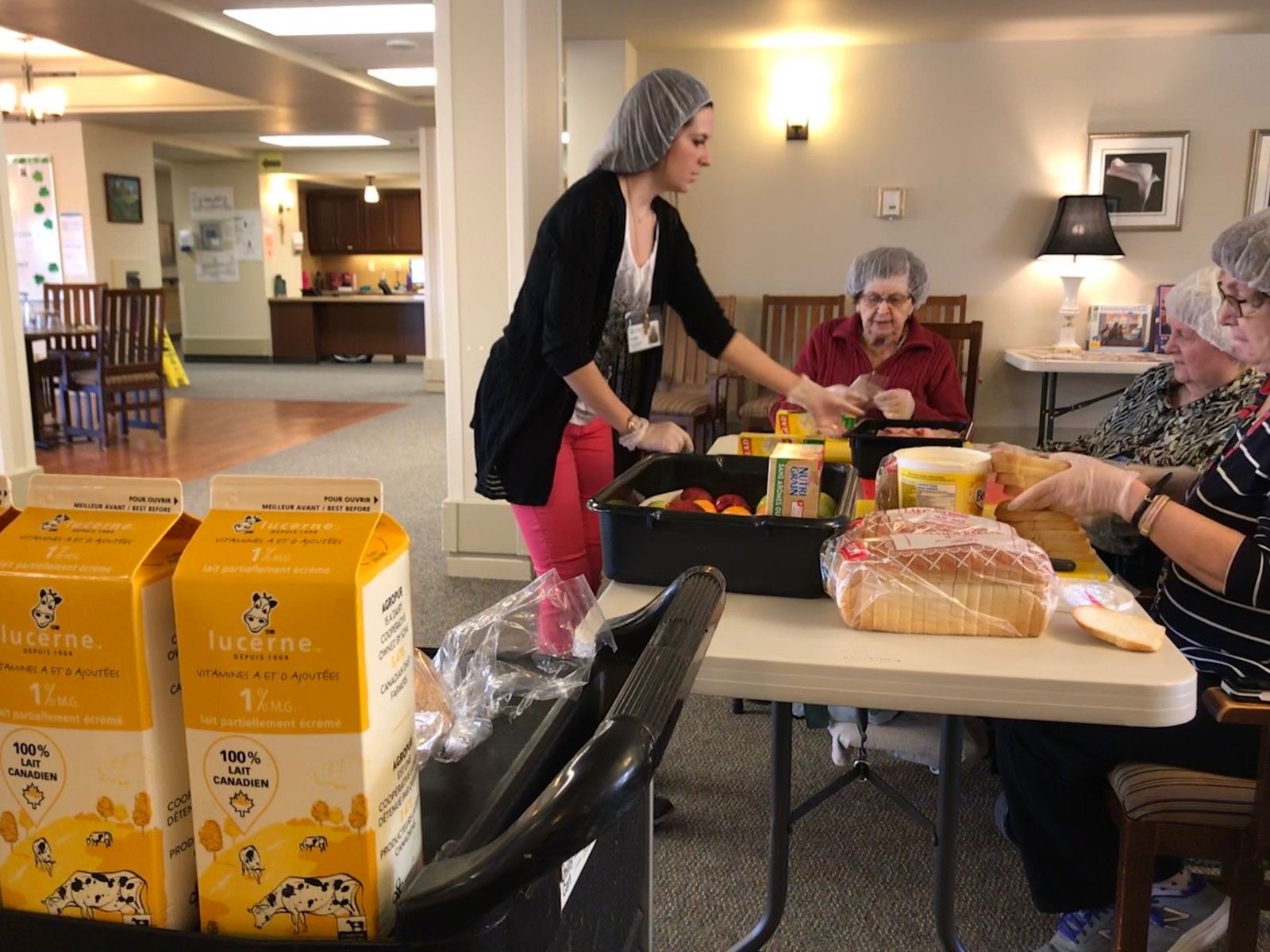 “It’s an extension of their rehab while they’re here. Some patients have had a stroke, so they’re only able to use one hand,” says Colene McCuaig, Recreation Therapist. “Some patients who have had a stroke also have memory and comprehension problems, so getting them to do sequencing jobs of placing all of the lunch items in the bags helps them work on their cognition.”