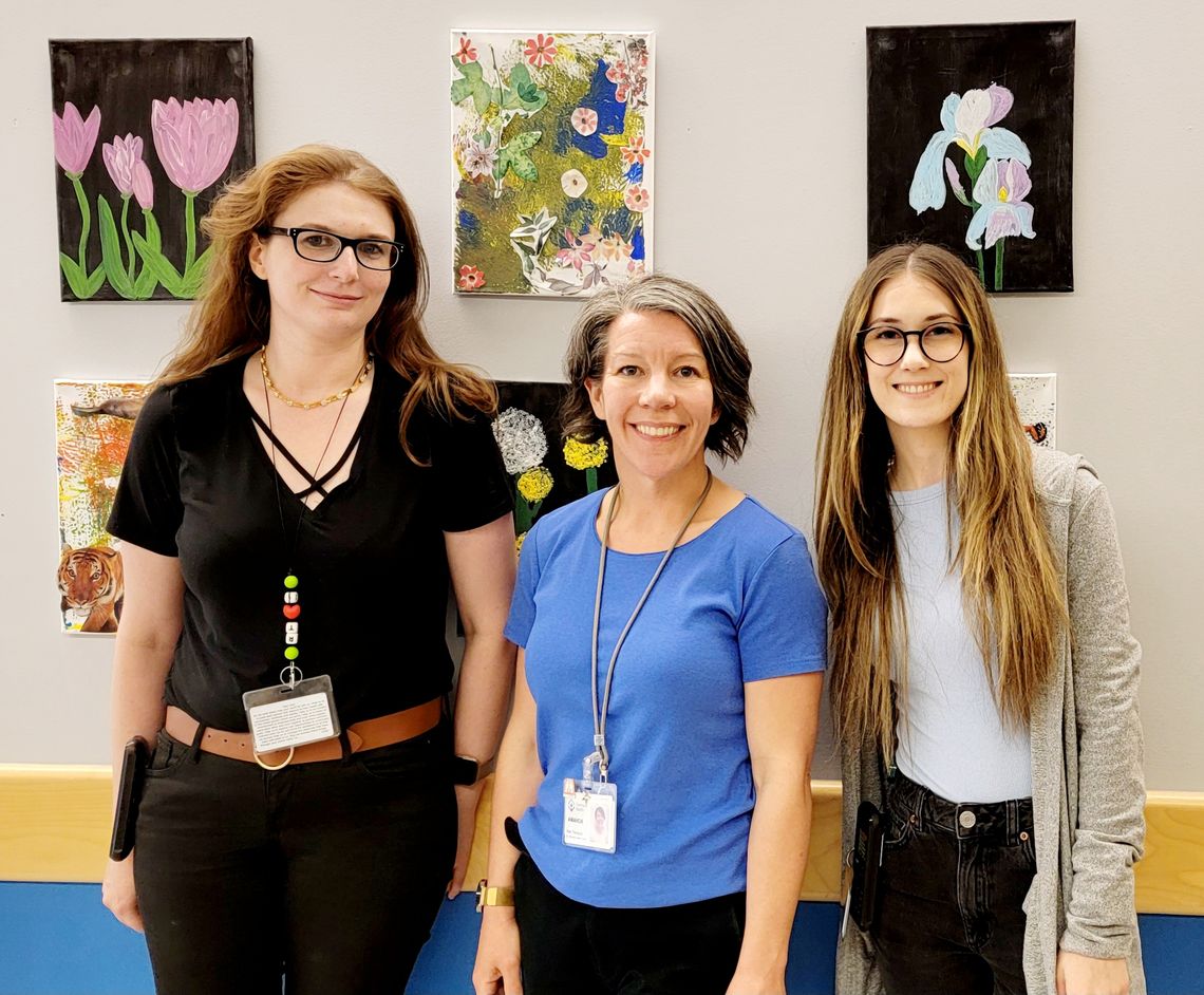 The Recreation Therapy team leading the Work of Art program at St. Michael's Lethbridge: Meagan Du Preez (recreation therapy assistant), Amanda Allen (recreation therapist), Lyrek Arvay (recreation therapy assistant)