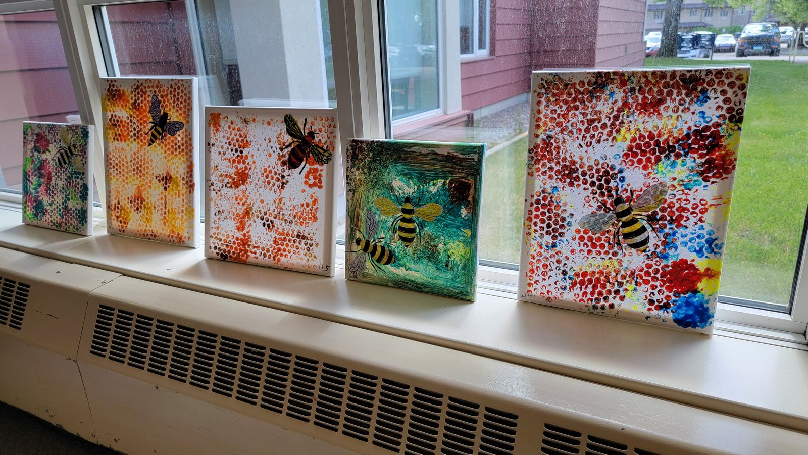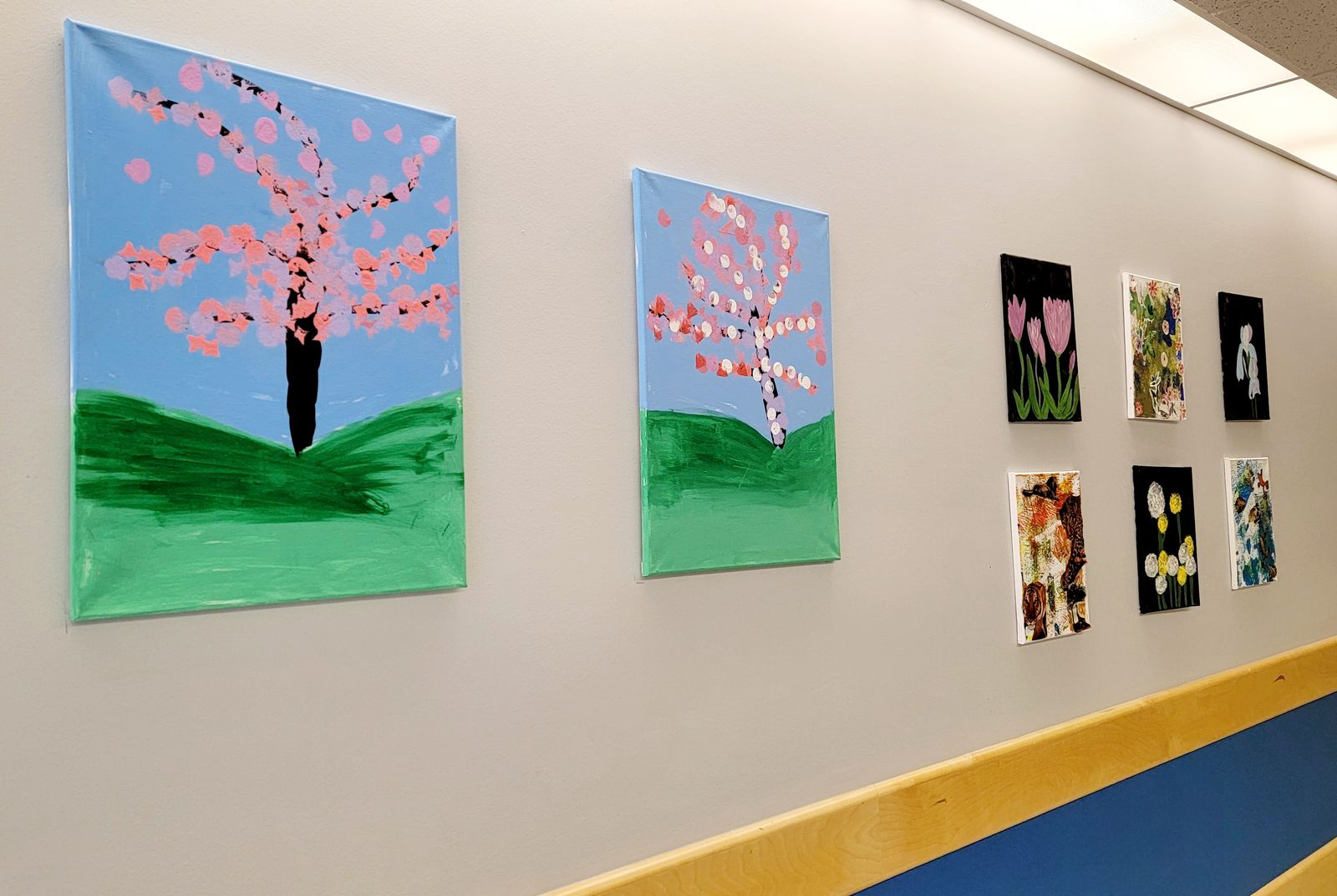 Residents were so proud of what they created with the new materials that they mounted an art show to display their work. Their pieces now hang in the centre’s hallways and common areas, transforming the space into something that feels less like a facility and more like a home.