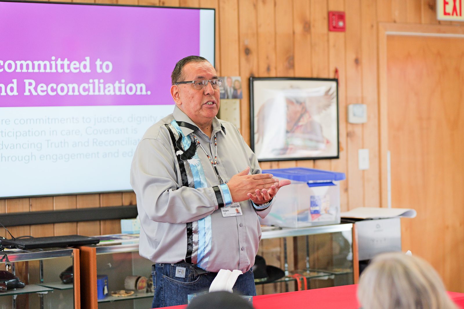 Adam: We have hosted engagement sessions in Edmonton, Leduc, Lethbridge, Calgary, Rocky Mountain House, and La Crete, with more to come. The goal is to listen to Elders, Knowledge Keepers, and community members, then identify common themes to shape Covenant’s Indigenous Health Plan.